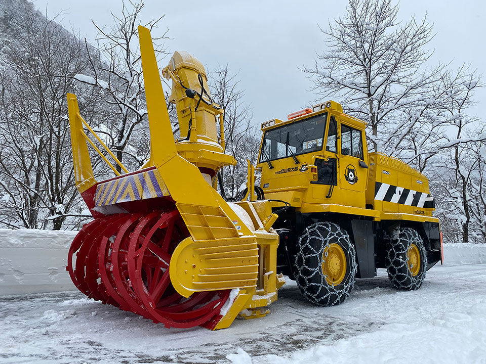 毎年まいとし立山有料道路たてやまゆうりょうどうろ立山黒部たてやまくろべアルペンルート)の道路除雪どうろじょせつをがんばってくれています。